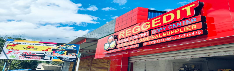 REGGEDIT UNIPESSOAL, LDA. Hanesan companha ida nebe timor oan rasik mak harii no foin establese iha Tinan 2016, Ami iha rekursu humanus nebe esperensia maximu iha area Digital Printing, Copy Center, Advertising, Supply Escritorio, Sasan mobiliario inklui material Informatika no Rede Internet.
